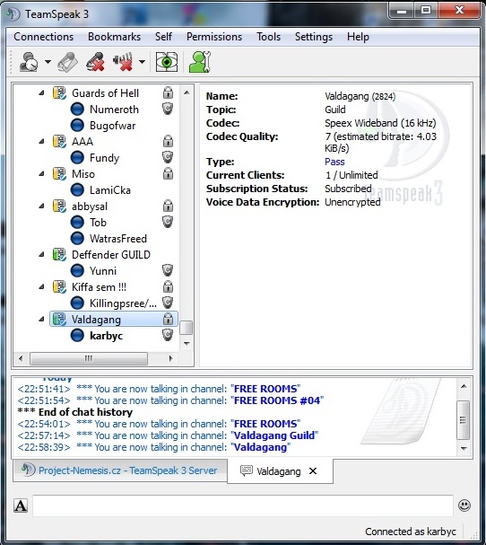 ts.project-nemesis.cz (93.99.191.223) - Nájdeme si Channel "VALDAGANG" klikneme pravím / open channel chat